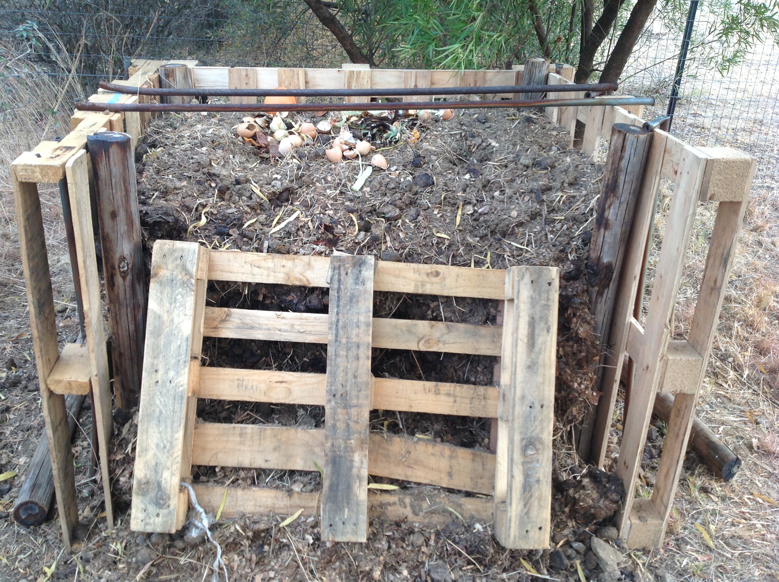 The compost heap was made from old pallets (yes – another one for Pinterest!) and we filled them with horse manure, as well as all the fruit & veg off cuts from the kitchen. Holes were made into the heap by placing thick wooden poles down the middle and then removing them – for ventilation.