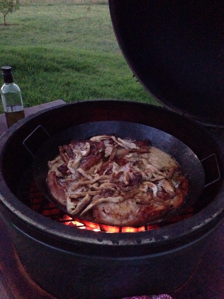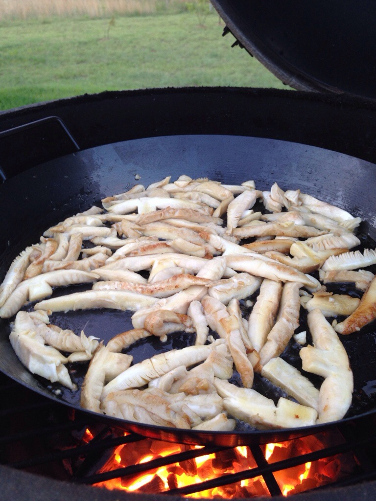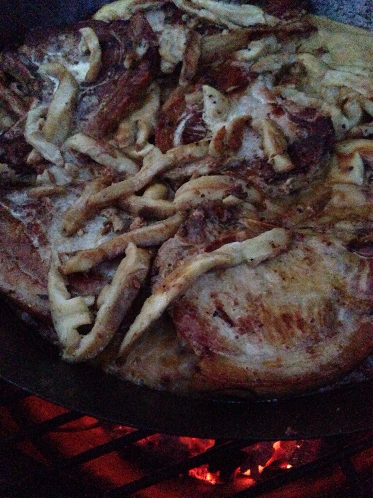 I cooked these mushrooms {sliced} in butter, olive oil and garlic in a large skillet over open coals {as they cook better on a high heat and won’t become mushy}.